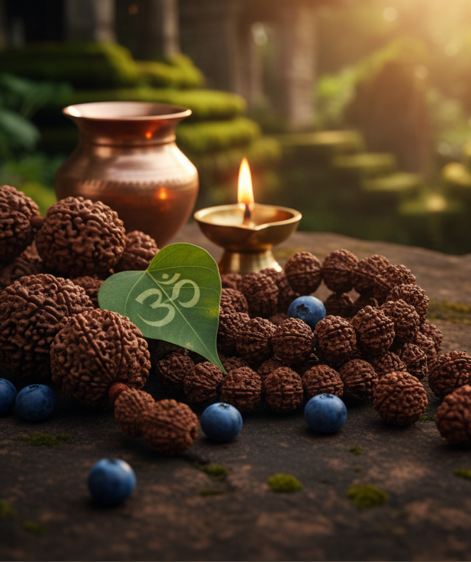 The Rudraksha is a sacred seed derived from the Elaeocarpus ganitrus tree, primarily found in the Himalayan regions, Nepal, Indonesia, and parts of India. It holds profound spiritual significance, especially in Hinduism, where it is regarded as a divine blessing from Lord Shiva.